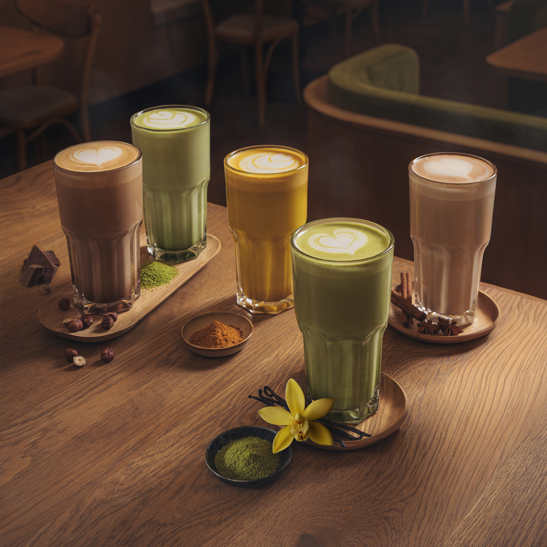 Unsere bunten Kreationen sorgen auch in der kalten Jahreszeit für Abwechslung! Jetzt neu: Bio-Sweet-Vanilla-Matcha-Latte.