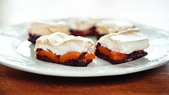 Schoko-Marillen-Kuchen mit Baiserhaube