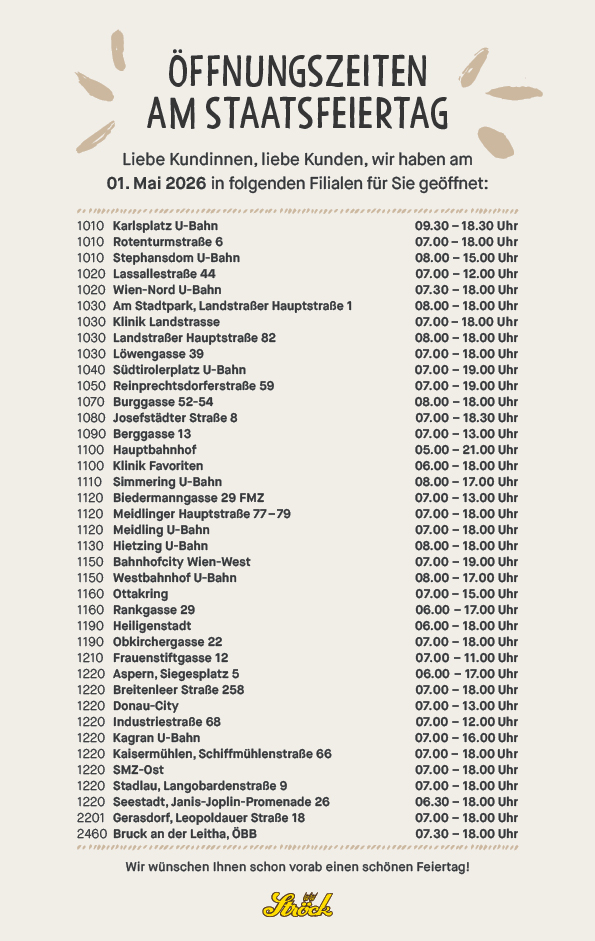 Hier finden Sie alle Filialen, die auch am Staatsfeiertag für Sie geöffnet haben.