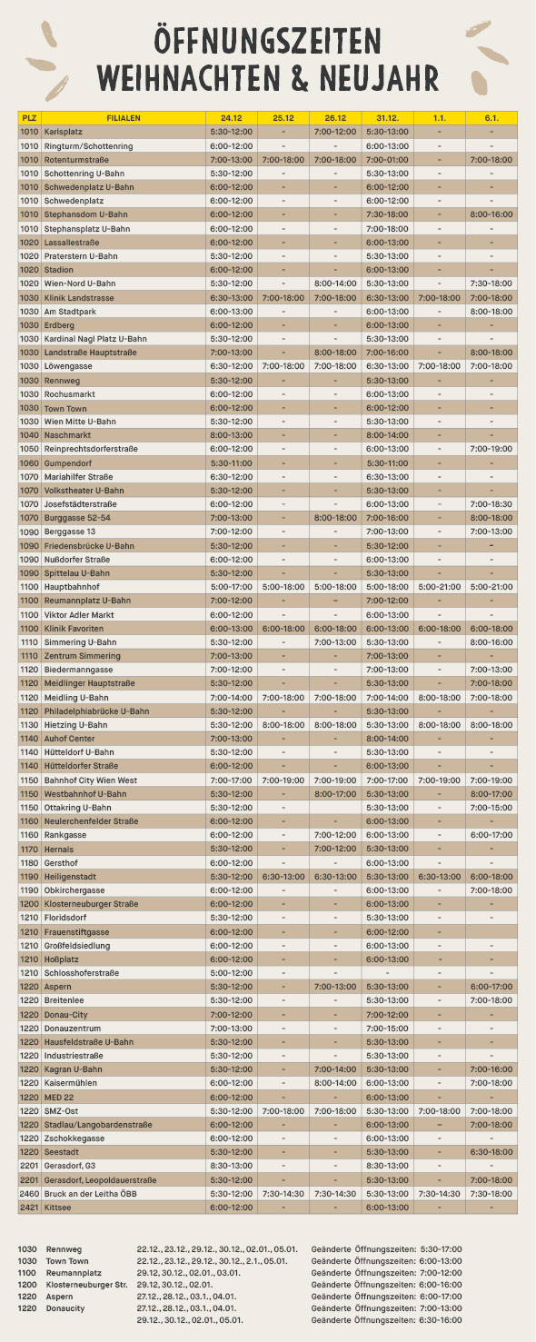 In diesen Filialen sind wir zu Weihnachten und Neujahr für Sie da:
