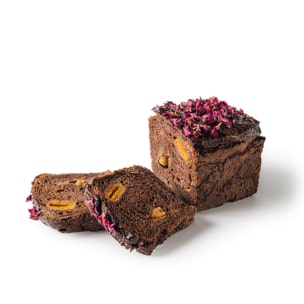 Eine feine Kreation unseres Chef-Pâtissiers und Entwicklungsbäckers Pierre Reboul aus einem Teil Roggen-Pur vom Vortag sowie dunkler und heller FAIRTRADE-Schokolade und Marillen.