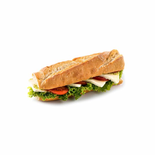 Baguette (WEIZENMEHL, Wasser, jodiertes Speisesalz (Speisesalz, Kaliumjodid), pflanzliches Öl (Raps- und Sonnenblumenöl in veränderlichen Gewichtsanteilen), Backhefe, Backmittel (WEIZENMEHL, Zucker, WEIZENQUELLMEHL, WEIZENKLEBER, WEIZENMALZMEHL, Malzextrakt (GERSTENMALZ, Wasser), Mehlbehandlungsmittel: Ascorbinsäure), Maismehl geröstet), Burgunderschinken (21,72%) (Schweinefleisch, Wasser, Nitritpökelsalz (Speisesalz, Konservierungsstoff: Natriumnitrit), Gewürze, Gewürzextrakte, Glukosesirup, Dextrose, Stabilisator: Triphosphate, Natriumcitrate; Antioxidationsmittel: Natriumascorbat; Aroma, Rauch), Lollo Verde, FRISCHKÄSE, Gouda 48% F.i.T (4,35%) (MILCH, Salz, Starterkultur, mikrobielles Lab), Tomaten, HÜHNEREIER gekocht (HÜHNEREIER, Wasser, Salz, Säuerungsmittel: Essigsäure, Zitronensäure), Sandwich-Gurken (Gurke, Branntweinessig, Zucker, Salz, Kräuterextrakte, Gewürzextrakte, Farbstoff: Riboflavin)